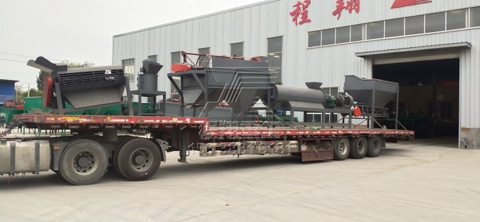 本次發(fā)貨的設備是程翔重工是為江西某客戶定制的,簡單的年產(chǎn)1萬噸雞糞有機肥生產(chǎn)線,主要設備有:鏈式粉碎機、滾筒篩分機、濕法攪齒造粒機、鏟車喂料倉以及自動包裝秤。
