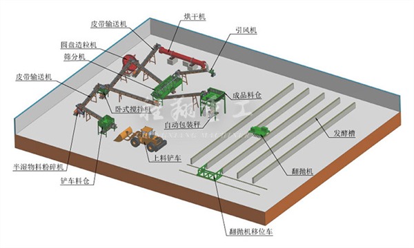 當(dāng)生產(chǎn)能力不足或者設(shè)備資金成本不夠時(shí),可以只配置一個(gè)槽式翻堆機(jī)進(jìn)行堆肥發(fā)酵,后期借助有機(jī)肥粉碎設(shè)備半濕物料粉碎機(jī)進(jìn)行粉碎處理。