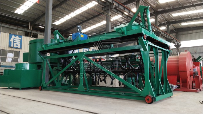 查看 > 20 2020/11由于該豬糞秸稈有機肥料生產(chǎn)線產(chǎn)量較大,因此分為多車裝置運輸。主要的豬糞加工設(shè)備有:大型秸稈粉碎機、履帶式翻堆機、臥式攪拌機、新型三合一造粒機、不同型號的滾筒篩分機以及多個型號的烘干冷卻設(shè)備。滾筒烘干設(shè)備風頭以及風機安置熱風爐以及冷卻設(shè)備多個烘干冷卻設(shè)備履帶式翻堆機以及大型秸稈粉碎機二次烘干設(shè)備滾筒篩分機以及鏟車喂料倉本次豬糞秸稈有機肥料生產(chǎn)線工藝設(shè)計流程為:利用大型秸稈粉碎機將稻草秸稈等粉碎均勻,