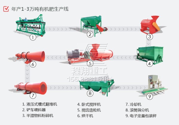年產(chǎn)1-3萬噸的有機肥生產(chǎn)線成套設(shè)備