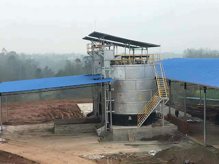 一般的有機(jī)肥加工廠頂棚一般在5~7米左右,因此在車間內(nèi)進(jìn)行發(fā)酵的設(shè)備一般高度不能太高,因此高度≥5米就需要額外進(jìn)行防雨措施,頂部架設(shè)防雨棚,具體的安裝如下圖所示。