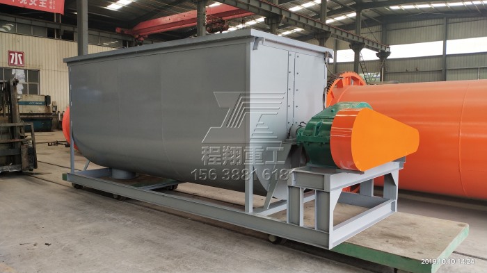 3、混合、攪拌:這里主要借助臥式攪拌機(jī)進(jìn)行混合,將發(fā)酵好、粉碎均勻的有機(jī)物料與復(fù)合肥料充分混合,3-5分鐘攪拌一倉(cāng),攪拌均勻之后由輸送機(jī)直接輸送至肥料造粒機(jī)當(dāng)中進(jìn)行造粒環(huán)節(jié)。