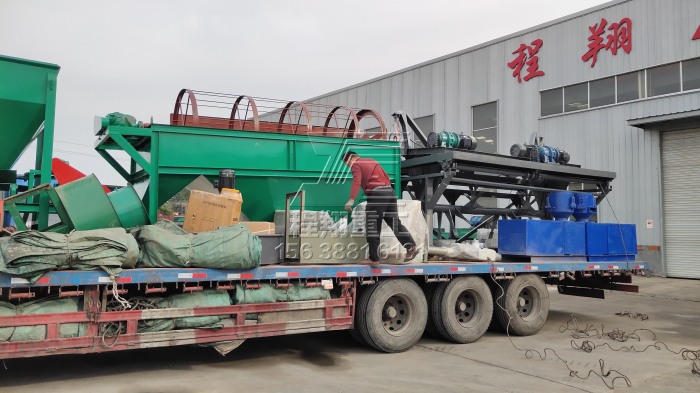 肥料生產(chǎn)設(shè)備廠家程翔重工本次發(fā)貨為年產(chǎn)5萬(wàn)噸的豬糞有機(jī)肥加工成套設(shè)備,主要的有機(jī)肥生產(chǎn)設(shè)備有:液壓槽式翻堆機(jī)、鏟車喂料機(jī)、半濕物料粉碎機(jī)、臥式攪拌機(jī)、平模擠壓造粒機(jī)、滾筒烘干機(jī)、冷卻機(jī)、滾筒篩分機(jī)、自動(dòng)包裝秤等等。由于肥料加工設(shè)備較多,因此分為兩車裝貨。