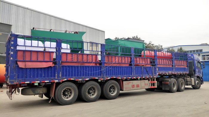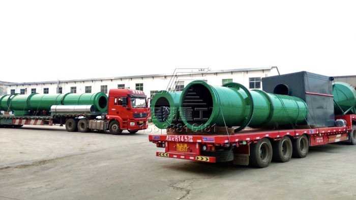 由于該豬糞秸稈有機(jī)肥料生產(chǎn)線產(chǎn)量較大,因此分為多車裝置運(yùn)輸。主要的豬糞加工設(shè)備有:大型秸稈粉碎機(jī)、履帶式翻堆機(jī)、臥式攪拌機(jī)、新型三合一造粒機(jī)、不同型號的滾筒篩分機(jī)以及多個型號的烘干冷卻設(shè)備。