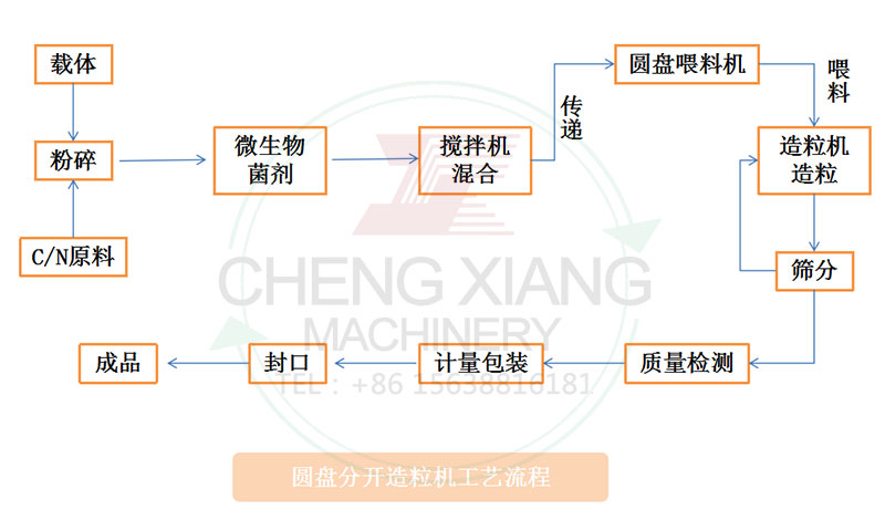 微生物肥料生產(chǎn)工藝的關(guān)鍵是造粒方式的選擇,目前微生物肥料常用的造粒方式主要有兩種(圓盤(pán)造粒和擠壓造粒),因不同的造粒方式對(duì)原料的要求不同,故生產(chǎn)工藝也會(huì)不同。程翔重工通過(guò)對(duì)四種生產(chǎn)工藝(圓盤(pán)混合造粒、混合后擠壓造粒、擠壓造粒后噴加菌劑、分開(kāi)造粒)的比較研究得知,微生物肥料生產(chǎn)工藝以選擇圓盤(pán)分開(kāi)造粒工藝為佳。因?yàn)樵摴に嚳梢詼p少化肥對(duì)微生物菌劑的影響,先將載體與菌劑造粒后,存放至中間料倉(cāng),再與載體和無(wú)機(jī)肥造粒后的粒子混合,最后得產(chǎn)品。