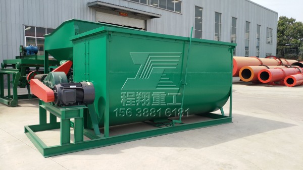 混合是指將固體糞便、輔料和各種調(diào)理劑按照預(yù)先設(shè)定的配方比例均勻混合的過程。對原料進(jìn)行預(yù)混合,可以使堆體內(nèi)各處均達(dá)到要求的碳氮比,確保微生物存活繁衍。根據(jù)被混合物料的性質(zhì),宜采用雙軸無重力式臥式混合機(jī)。該機(jī)臥式筒體內(nèi)裝有雙軸旋轉(zhuǎn)反向的槳葉,槳成一定角度將物料沿軸向、徑向循環(huán)翻攪,使物料迅速混合均勻。減速機(jī)帶動軸的旋轉(zhuǎn)速度與槳葉的結(jié)構(gòu)會使物料重力減弱,即使物料有比重、粒徑的差異,在交錯布置的攪拌葉片快速劇烈的翻騰拋灑下,也能達(dá)到很好的混合效果。如果該機(jī)能根據(jù)原料性質(zhì)自動控制混合時間,就能取得更好的效果和效率。