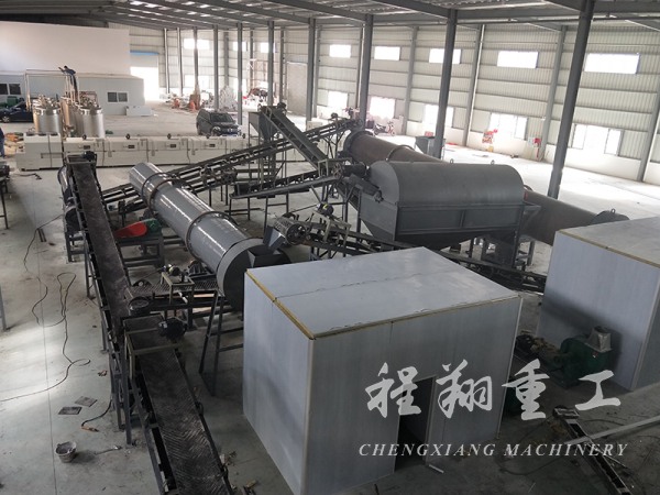 查看 > 20 2020/11由于該豬糞秸稈有機(jī)肥料生產(chǎn)線產(chǎn)量較大,因此分為多車裝置運(yùn)輸。主要的豬糞加工設(shè)備有:大型秸稈粉碎機(jī)、履帶式翻堆機(jī)、臥式攪拌機(jī)、新型三合一造粒機(jī)、不同型號的滾筒篩分機(jī)以及多個型號的烘干冷卻設(shè)備。滾筒烘干設(shè)備風(fēng)頭以及風(fēng)機(jī)安置熱風(fēng)爐以及冷卻設(shè)備多個烘干冷卻設(shè)備履帶式翻堆機(jī)以及大型秸稈粉碎機(jī)二次烘干設(shè)備滾筒篩分機(jī)以及鏟車喂料倉本次豬糞秸稈有機(jī)肥料生產(chǎn)線工藝設(shè)計流程為:利用大型秸稈粉碎機(jī)將稻草秸稈等粉碎均勻,