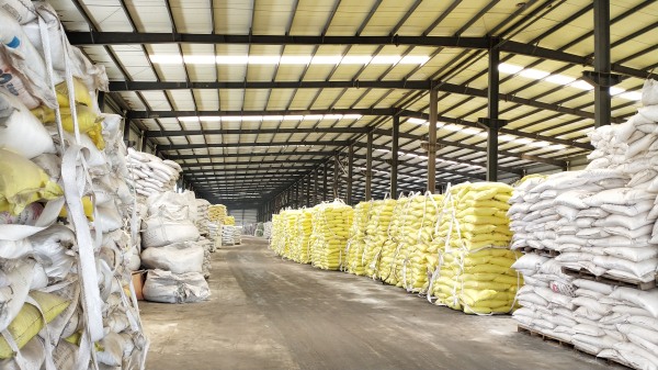 年產(chǎn)10萬噸的復(fù)合肥生產(chǎn)線成品庫堆放: