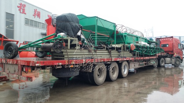 查看 > 20 2020/11由于該豬糞秸稈有機肥料生產(chǎn)線產(chǎn)量較大,因此分為多車裝置運輸。主要的豬糞加工設(shè)備有:大型秸稈粉碎機、履帶式翻堆機、臥式攪拌機、新型三合一造粒機、不同型號的滾筒篩分機以及多個型號的烘干冷卻設(shè)備。滾筒烘干設(shè)備風(fēng)頭以及風(fēng)機安置熱風(fēng)爐以及冷卻設(shè)備多個烘干冷卻設(shè)備履帶式翻堆機以及大型秸稈粉碎機二次烘干設(shè)備滾筒篩分機以及鏟車喂料倉本次豬糞秸稈有機肥料生產(chǎn)線工藝設(shè)計流程為:利用大型秸稈粉碎機將稻草秸稈等粉碎均勻,