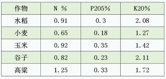 上圖為常見的農(nóng)作物秸稈養(yǎng)分含量(烘干基)