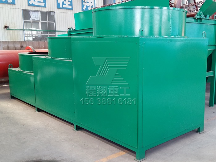 查看 > 13 2020/10本次發(fā)貨的設(shè)備是程翔重工是為江西某客戶定制的,簡單的年產(chǎn)1萬噸雞糞有機肥生產(chǎn)線,主要設(shè)備有:鏈?zhǔn)椒鬯闄C、滾筒篩分機、濕法攪齒造粒機、鏟車喂料倉以及自動包裝秤。改雞糞生產(chǎn)線的工作流程為:發(fā)酵——粉碎——攪拌——造粒——篩分——包裝運輸1.發(fā)酵是第一步,畜禽糞便含有大量病蟲卵,需要進
