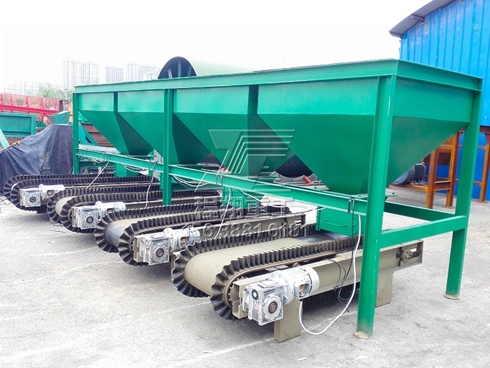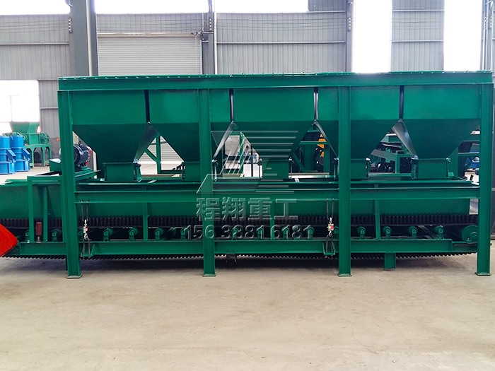 本次牛糞全套有機(jī)肥料設(shè)備生產(chǎn)工藝采用槽式好氧發(fā)酵,利用翻堆槽發(fā)酵既干凈又能最大化的利用有限的場地,增加糞便處理量。由于客戶對于顆粒有機(jī)質(zhì)含量以及NPK有特殊要求,因此我們?yōu)榭蛻魧iT定制了一臺三倉的靜態(tài)配料系統(tǒng)。