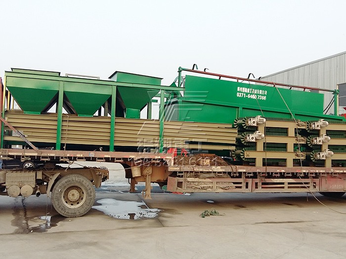 查看 > 20 2020/11由于該豬糞秸稈有機(jī)肥料生產(chǎn)線產(chǎn)量較大,因此分為多車裝置運(yùn)輸。主要的豬糞加工設(shè)備有:大型秸稈粉碎機(jī)、履帶式翻堆機(jī)、臥式攪拌機(jī)、新型三合一造粒機(jī)、不同型號的滾筒篩分機(jī)以及多個(gè)型號的烘干冷卻設(shè)備。滾筒烘干設(shè)備風(fēng)頭以及風(fēng)機(jī)安置熱風(fēng)爐以及冷卻設(shè)備多個(gè)烘干冷卻設(shè)備履帶式翻堆機(jī)以及大型秸稈粉碎機(jī)二次烘干設(shè)備滾筒篩分機(jī)以及鏟車喂料倉本次豬糞秸稈有機(jī)肥料生產(chǎn)線工藝設(shè)計(jì)流程為:利用大型秸稈粉碎機(jī)將稻草秸稈等粉碎均勻,