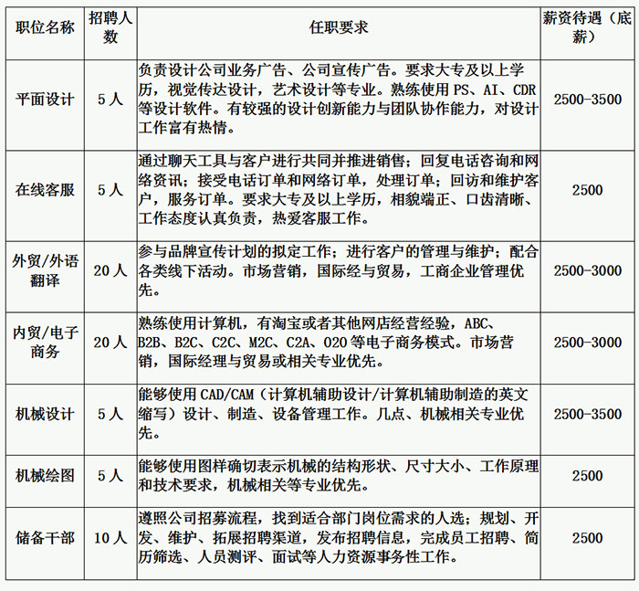 因公司規(guī)模日益擴大,技術、業(yè)務等方面人員緊缺,現(xiàn)向廣大群眾誠摯招納賢才。